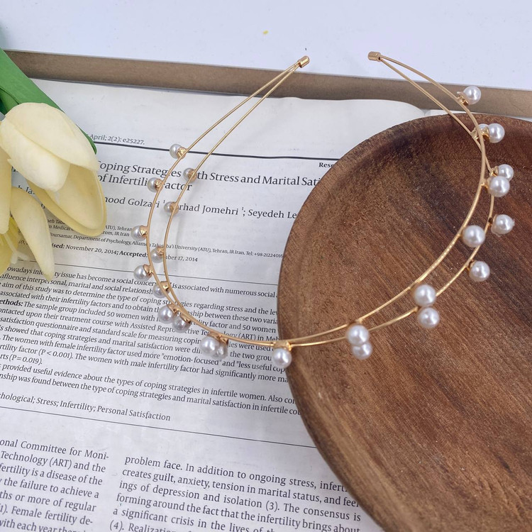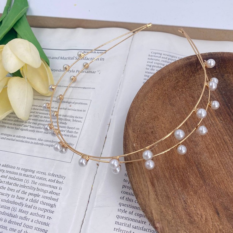 این تل مو فلزی مرواریدی از جنس فلز طلایی ساخته شده و با مرواریدهای سفید تزیین شده است. مرواریدها به صورت منظم در قسمت بالایی تل قرار گرفتهاند و ظاهری ساده اما شیک به آن بخشیدهاند. این نوع تل معمولاً برای مراسم رسمی و نیمهرسمی مانند عروسیها، مهمانیها و رویدادهای خاص استفاده میشود و به راحتی با لباسهای مختلف هماهنگ میشود.