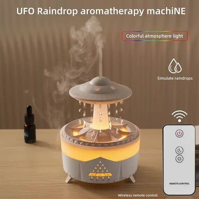 دستگاه بخور و چراغ خواب شبیه ساز باران قارچی (رنگ مشکی)