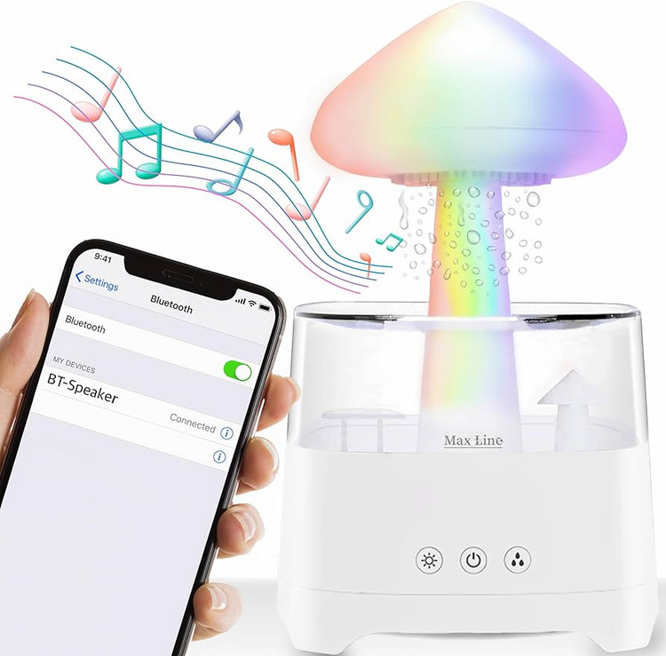 چراغ خواب اسپیکر cloud rain humidifier، دستگاهی سه کاره شامل اسپیکر بلوتوثی ، پخش کننده عطر در محیط و چراغ خواب است.