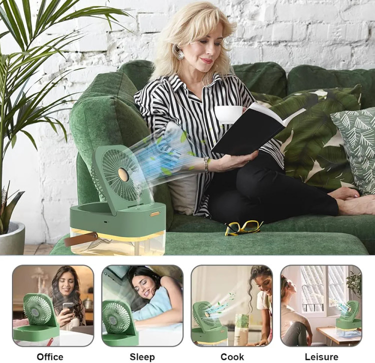 پنکه رومیزی مه پاش و چراغ خواب مدل Dual Spray