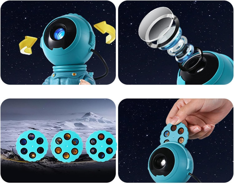 پروژکتور کهکشانی از محفظه که درون آن یک منبع نور قرار دارد ساخته شده است. دیسکهای کوچکی با استفاده از دستگاه های پیشرفته ساخته شده اند. با قرار دادن این دیسکها جلوی منبع نور و عبور نور از این دیسک باعث تصویری ایجاد می شود. این تصویر ایجاد شده نیاز به یک سطح دارد تا خود را نشان دهد. این سطح میتواند دیوار یا سقف اتاق شما باشد. این تصویر در تاریکی به وضوح دیده می شود و در روشنایی به خوبی قابل مشاهده نیست.