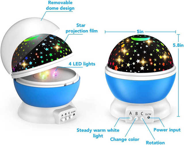 با استفاده از چراغ خواب کودک چرخشی مدل Star Master می توانید یک آسمان پرستاره در شب را روی دیوارها و سقف اتاق طراحی کنید. با این کار اتاق خواب کودک تبدیل به یک پناهگاه پر ستاره می شود. آسمان شب تصاویر شگفت انگیزی را در خود جای داده است.به همین دلیل است که بسیاری از مردم دوست دارند از چراغ خواب کودک استفاده کنند. آیا تا به حال در آسمان شب به جستجو پرداخته اید تا متوجه شوید واقعاً جهان چه قدر بزرگ است. اگر در یک شهر زندگی می کنید اصلاً نمی توانید یک شب پر ستاره را ببینید. به همین دلیل اکثر کودکان ممکن است هرگز نور طبیعی آسمان شب را نبینند. چراغ خواب کودک چرخشی مدل Star Master بسیاربا دوام و بی خطر برای کودکان است به طوری که یک محیط خواب امن برای کودک فراهم می کند.چراغ خواب کودک چرخشی مدل Star Master دارای قابلیت چرخش ۳۶۰ درجه است به نحوی که می تواند کاملاً کودک را سرگرم و او را برای خواب آماده کند.