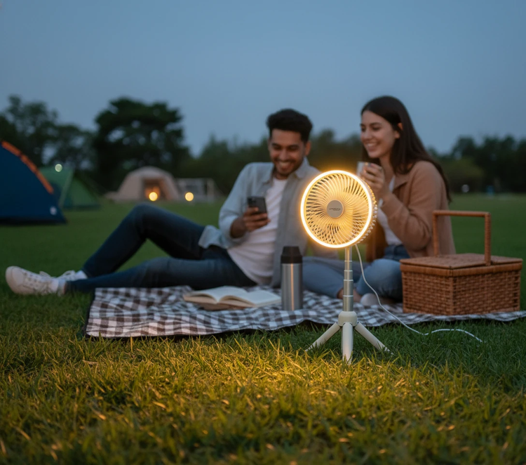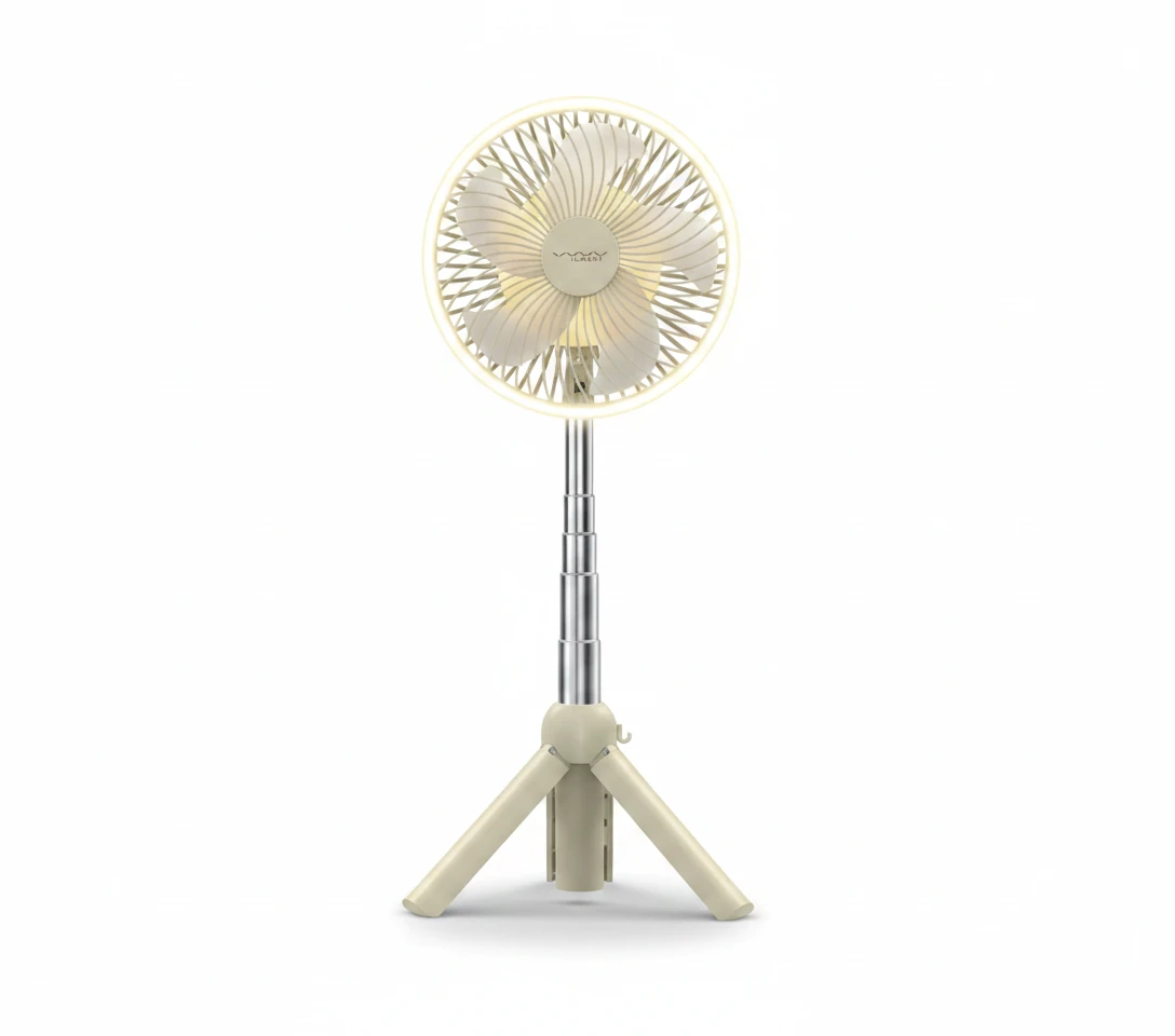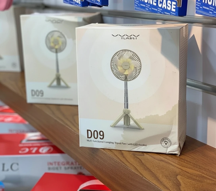پنکه شارژی D09 سه‌پایه، ۴ سرعت، باتری ۴۰۰۰mAh با LED