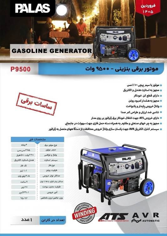 موتور برق بنزینی ۹/۵ کیلووات پالاس مدل P9500
